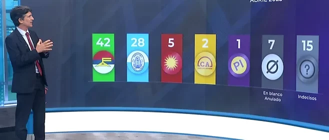 42% votaría al Frente Amplio y 36% a la coalición de gobierno, con 15% de indecisos