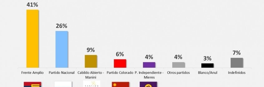 Le siguen el Partido Nacional con 26%, Cabildo Abierto con 9%, el Partido Colorado con 6% y el Partido Independiente con 4%, según la última encuesta de Factum.