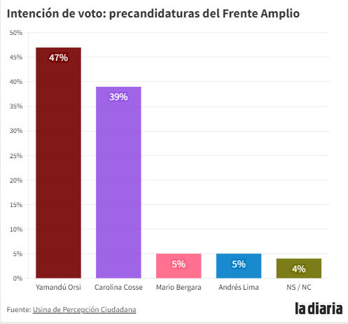 Elecciones internas: en el FA, Orsi lidera con el 47% pero Cosse acorta distancias, según la Usina de Percepción Ciudadana