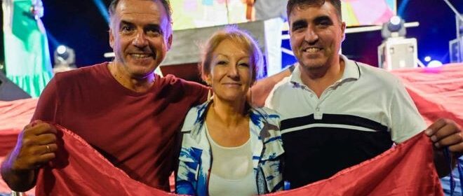 En paralelo, Orsi ya había llegado para presenciar el acto pero decidió esperar en las inmediaciones del escenario, donde ya había otro montón de militantes que no paraban de pedirle fotos. Cuando el banderazo llegó, Orsi arriesgó un baile junto a una de las bailarinas de la comparsa.