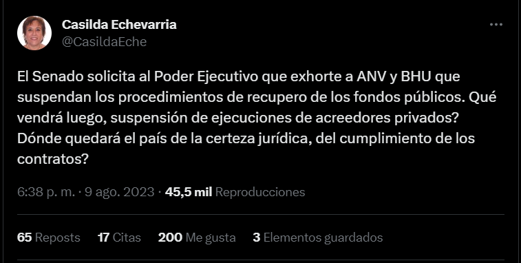 Ayer se dio un paso firme avanzando en el camino de una solución, el Senado solicitando al Poder Ejecutivo que disponga el cese de los remates e intimaciones de pago, hasta tanto se de una solución definitiva a esta situación.