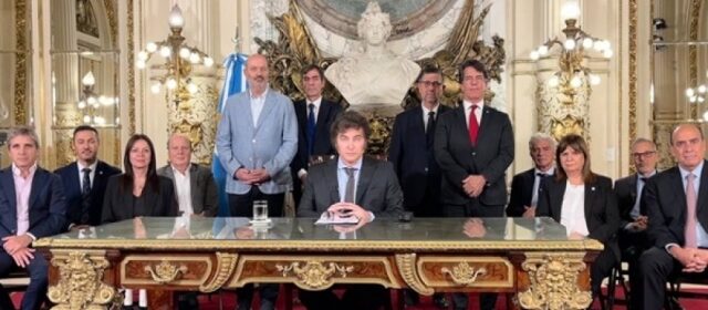 Motivado por la crisis económica y social argentina, el presidente Javier Milei presentó una batería de medidas de shock para la desregulación de la economía, de los servicios y del Estado, que fue presentada por cadena nacional. Marchas, cacerolazos, críticas y expresiones de apoyo dieron contexto al conjunto de medidas dispuestas por decreto de necesidad y urgencia.